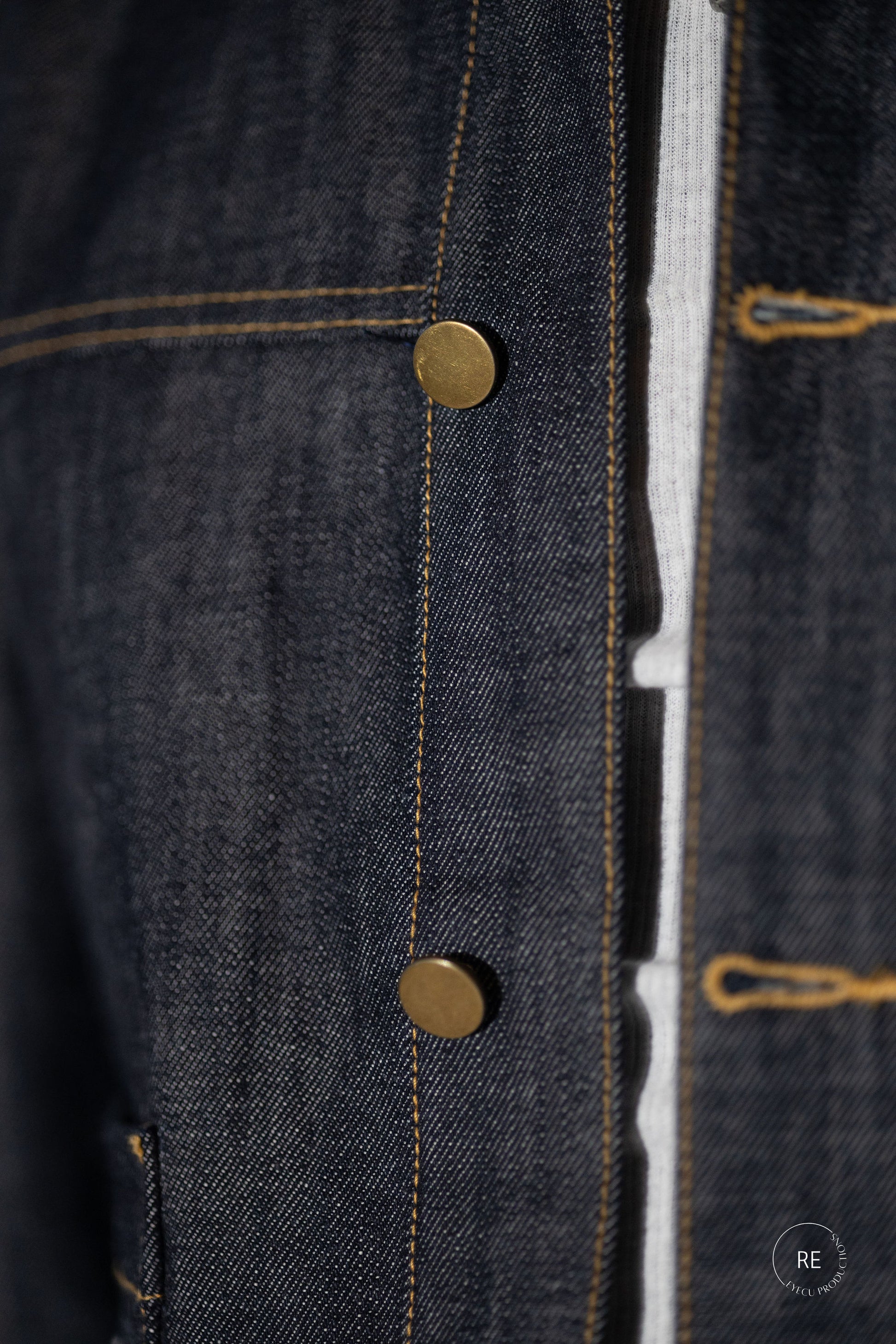 Each print is placed by hand, disrupting the clean geometry of the pockets with an intentional raw edge that turns utility into art. The untreated selvedge fabric gives the jacket a structured, armor-like feel at first, then softens and molds uniquely to its wearer over time — evolving with each movement and moment lived.
